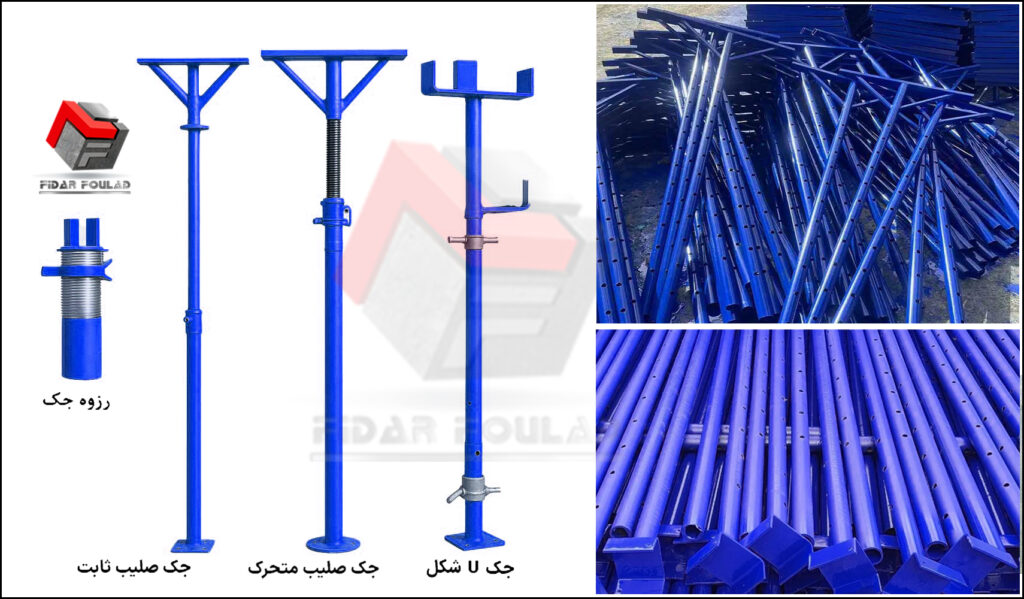 • جک عراقی: این جک‌ها دارای ساختار U  شکل هستند که امکان پشتیبانی از بارهای خاص و شکل‌های غیرمتعارف را فراهم می‌کنند. این نوع جک بیشتر در پروژه‌هایی که نیاز به پشتیبانی خاص دارند، مورد استفاده قرار می‌گیرد.